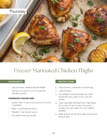 •   2 lbs boneless, skinless chicken thighs          1.  Place chicken + marinade in freezer bag.