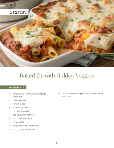 • 1 lb ziti pasta (penne, rigatoni, shells, • 1# of cooked sausage of your choice (totally