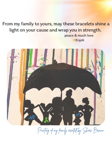 From my family to yours, may these bracelets shine a light on your cause and wrap you in strength. peace & much love ✨Enjoli Painting of my family created by Shari Brown