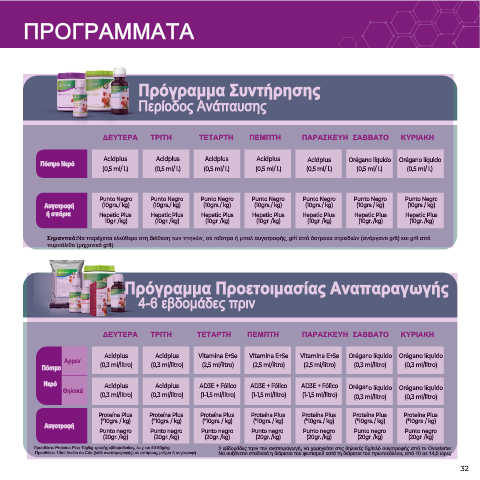 Προσθέστε Proteina Plus 10g/kg τροφής εβδομαδιαίως, έως και 40-50g/kg. 2 εβδομάδες πριν την αναπαραγωγή, να χορηγείται στις θηλυκές 5g/κιλό αυγοτροφής από το Ovostarter.
