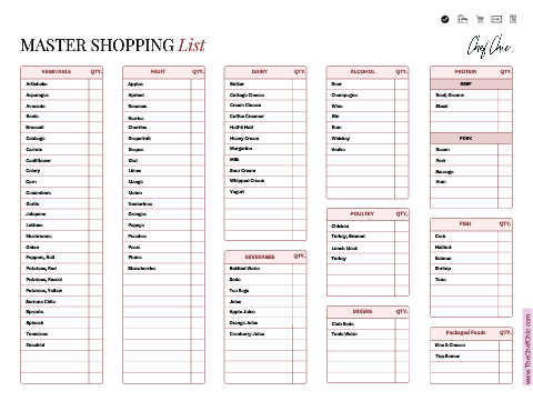 VEGETABLE      QTY.              FRUIT       QTY.              DAIRY       QTY.             ALCOHOL       QTY.             PROTEIN      QTY.