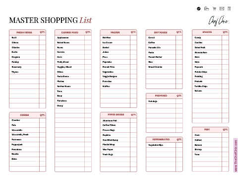 FRESH HERBS    QTY.           CANNED FOOD     QTY.             FROZEN       QTY.            DRY FOODS     QTY.              SNACKS       QTY.