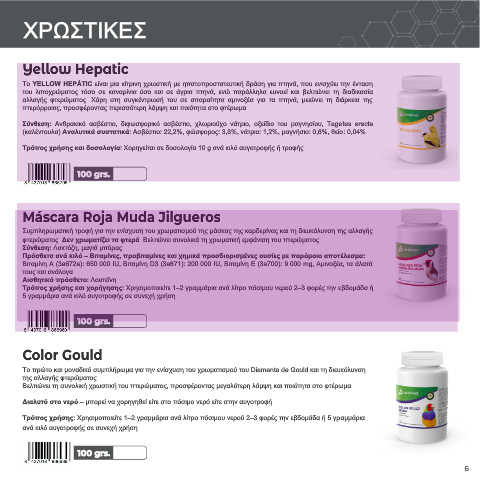 φτερώματος. Δεν χρωματίζει τα φτερά. Βελτιώνει συνολικά τη χρωματική εμφάνιση του πτερώματος.