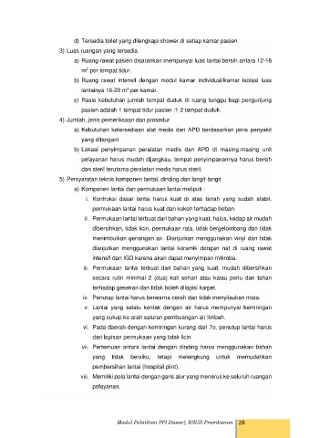 d) Tersedia toilet yang dilengkapi shower di setiap kamar pasien.