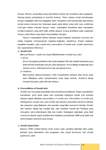 kesalahan tersebut, yaitu unsafe acts, precondition of unsafe acts, unsafe supervision