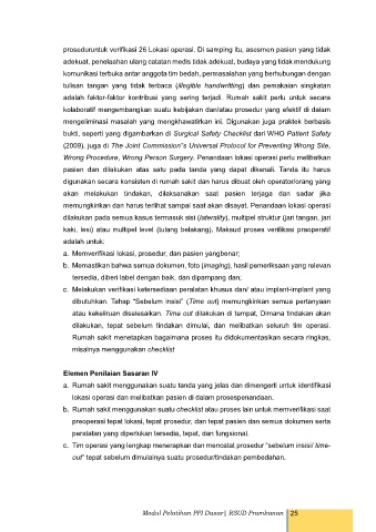 proseduruntuk verifikasi 26 Lokasi operasi. Di samping itu, asesmen pasien yang tidak