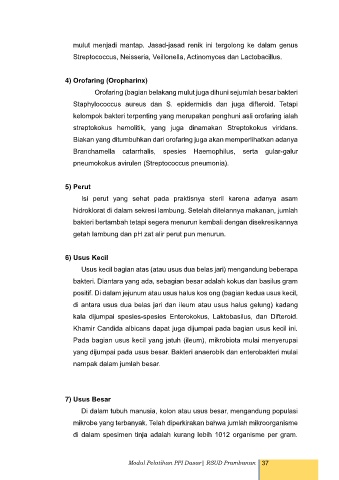 Orofaring (bagian belakang mulut juga dihuni sejumlah besar bakteri
