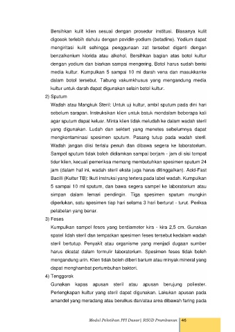 agar sputum dapat keluar. Minta klien tidak meludah ke dalam wadah steril