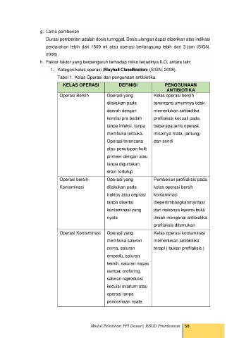 Tabel 1. Kelas Operasi dan pengunaan antibiotika