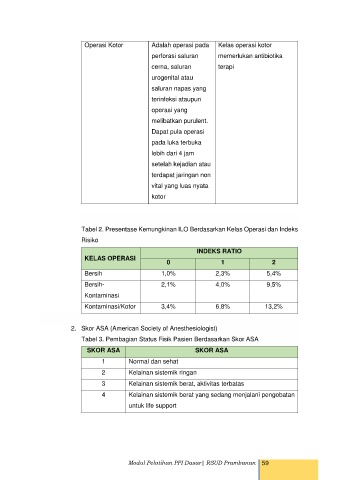 Tabel 2. Presentase Kemungkinan ILO Berdasarkan Kelas Operasi dan Indeks
