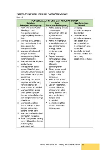 Tabel 16. Pengendalian Infeksi dan Kualitas Udara kelas II