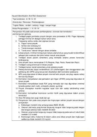 1. Terdapat pagar pembatas proyek dengan area perawatan di RS. Pagar dipasang