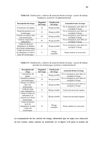 Tabla 3.9. Clasificación y criterios de actuación frente al riesgo - puesto de trabajo