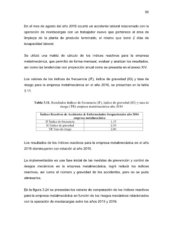 Tabla 3.11. Resultados índices de frecuencia (IF), índice de gravedad (IG) y tasa de