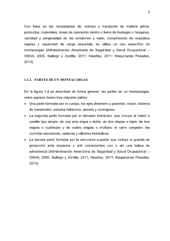 En la figura 1.4 se describen de forma general, las partes de un montacargas,