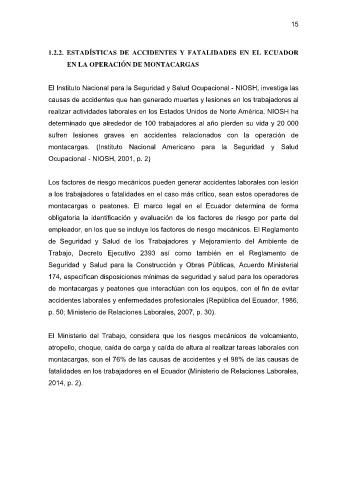 montacargas o peatones. El marco legal en el Ecuador determina de forma