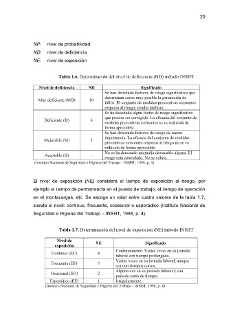 Tabla 1.7. Determinación del nivel de exposición (NE) método INSHT