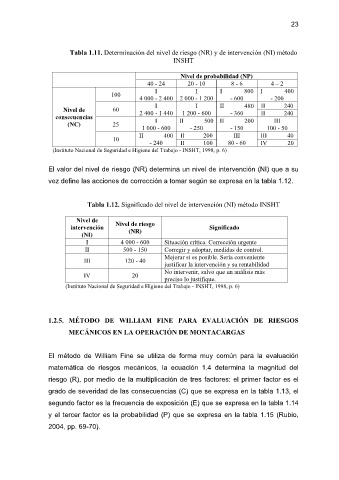 Tabla 1.11. Determinación del nivel de riesgo (NR) y de intervención (NI) método