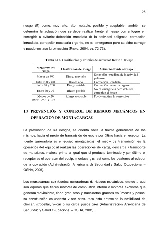 Tabla 1.16. Clasificación y criterios de actuación frente al Riesgo