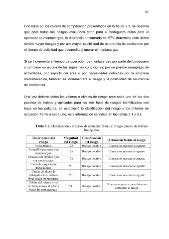 Tabla 3.1. Clasificación y criterios de actuación frente al riesgo, puesto de trabajo