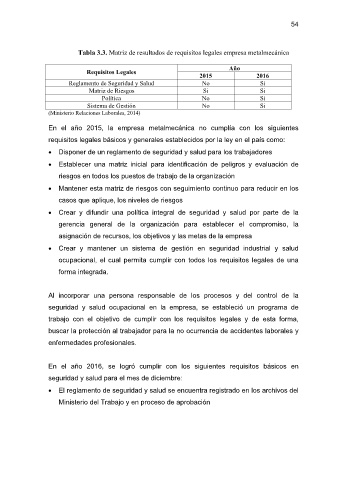 Tabla 3.3. Matriz de resultados de requisitos legales empresa metalmecánica