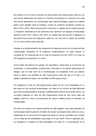 En la tabla 3.4 se incluyó el número de documentos de inspecciones antes de uso