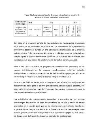 Tabla 3.6. Resultados del cuadro de mando integral para el objetivo de