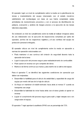 Para el operador 7, se identificó las siguientes condiciones de operación que