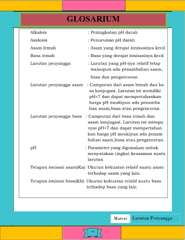 Larutan penyangga                     : Larutan yang pH-nya relatif tetap