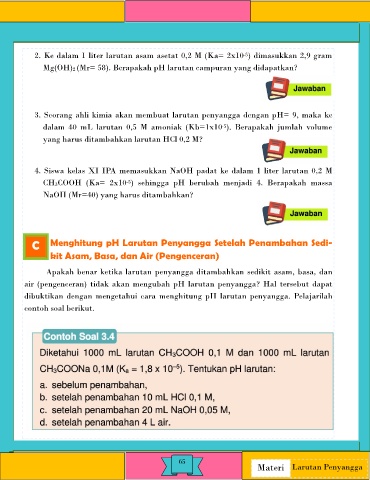 2. Ke dalam 1 liter larutan asam asetat 0,2 M (Ka= 2x10 ) dimasukkan 2,9 gram