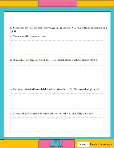 3. Sebanyak 100 mL larutan penyangga mengandung NH 3 dan NH4Cl, masing-masing