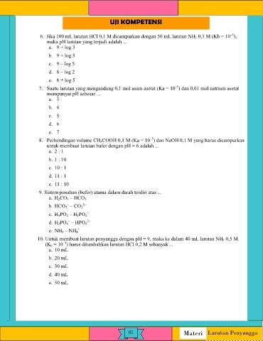 7. Suatu larutan yang mengandung 0,1 mol asam asetat (Ka = 10 ) dan 0,01 mol natrium asetat