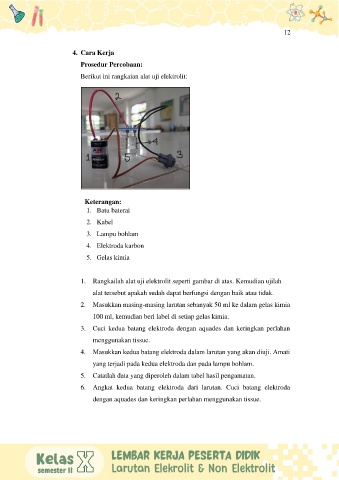 1. Rangkailah alat uji elektrolit seperti gambar di atas. Kemudian ujilah