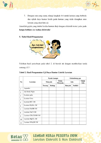 dan ujilah daya hantar listrik pada larutan yang telah disiapkan atau