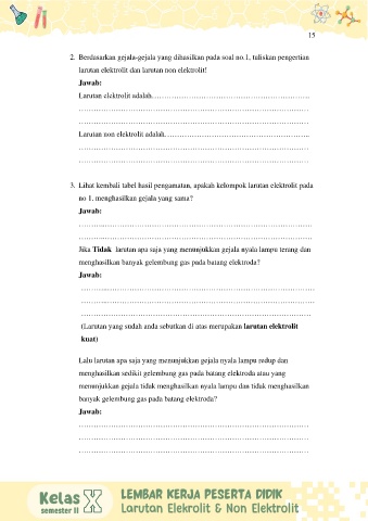 3. Lihat kembali tabel hasil pengamatan, apakah kelompok larutan elektrolit pada