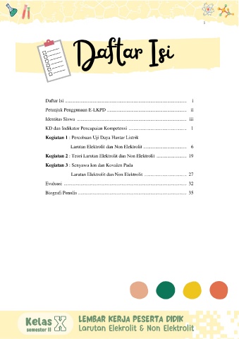 Kegiatan 2 : Teori Larutan Elektrolit dan Non Elektrolit ......................... 19