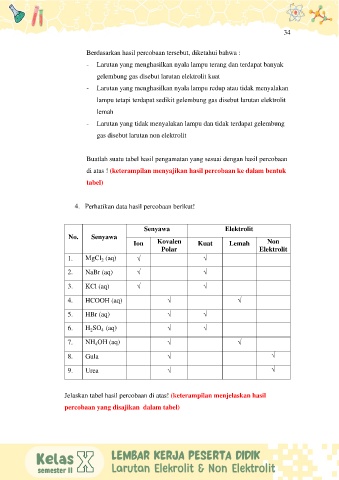 - Larutan yang menghasilkan nyala lampu terang dan terdapat banyak