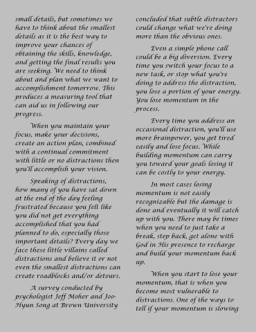 with little or no distractions then you toward your goals losing it