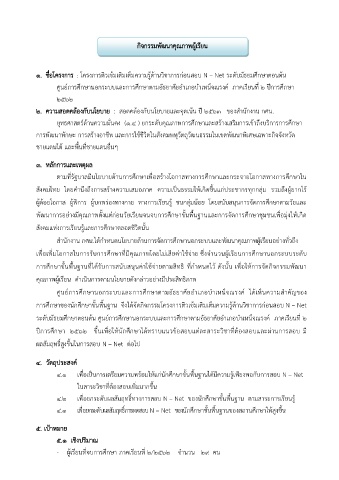 ๑. ชือโครงการ : โครงการตวเขมเติมเตมความรูดานวิชาการกอนสอบ N – Net ระดับมัธยมศึกษาตอนตน