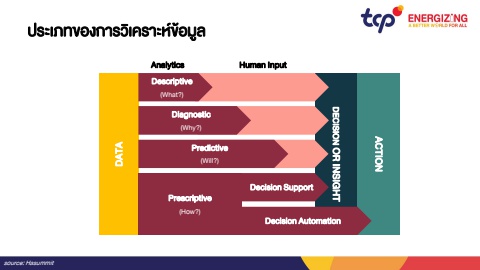 DECISION OR INSIGHT ACTIONDATADecision SupportDecision AutomationPrescriptive(How?)Analytics Human InputDescriptive(What?)Diagnostic(Why?)Predictive(Will?)source: Hasummit%u0e1b%u0e23%u0e30%u0e40%u0e20%u0e17%u0e02%u0e2d%u0e07%u0e01%u0e32%u0e23%u0e27%u0e34%u0e40%u0e04%u0e23%u0e32%u0e30%u0e2b%u0e4c%u0e02%u0e49%u0e2d%u0e21%u0e39%u0e25