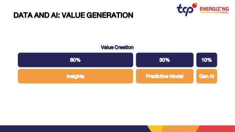 DATA AND AI: VALUE GENERATION60% 30% 10%Insights Predictive Model Gen AIValue Creation