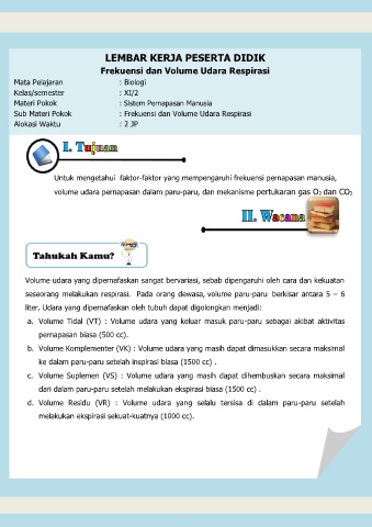 volume udara pernapasan dalam paru-paru, dan mekanisme pertukaran gas O2 dan CO2