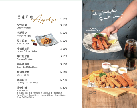 French Wedges、Fried Chicken、Popcorn Chicken、Cheese Sticks、