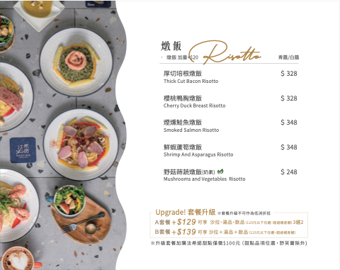 Upgrade! 套餐升級 ※套餐升級不可作為低消折抵