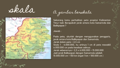 Jarak sebenarnya = 2,5 x 6.000.000 = 15.000.000