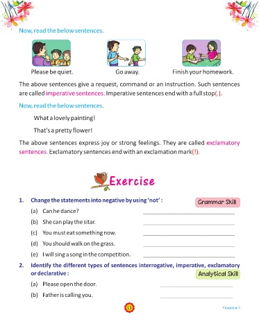 1. Change the statements into negative by using ‘not’ : Grammar Skill