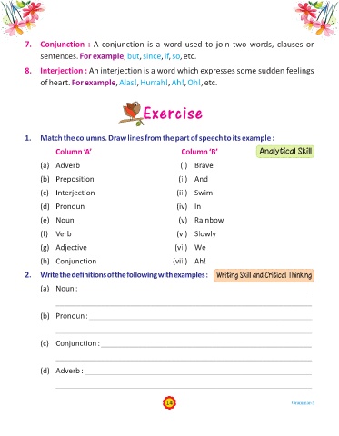 7. Conjunction : A conjunction is a word used to join two words, clauses or