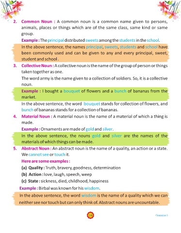 5. Abstract Noun : An abstract noun is the name of a quality, an action or a state.