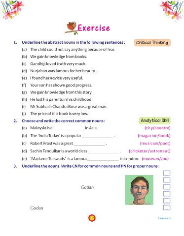 1. Underline the abstract nouns in the following sentences : Critical Thinking