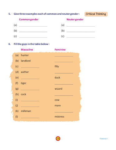 5. Give three examples each of common and neuter gender : Critical Thinking
